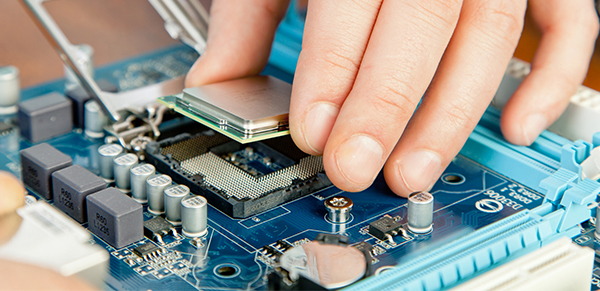 Сотрудник сервисного центра исполняет работу: заменяет испорченную запчасть пригодной к эксплуатации оригинальной деталью